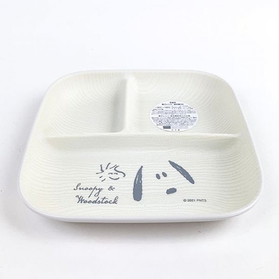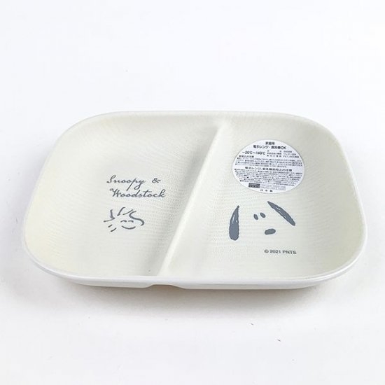 真ん中に仕切りが付いたバージョンも♪スヌーピーのフェイス柄がグレーで優しい印象を与えます。電子レンジ・食洗器も使用可能です。
