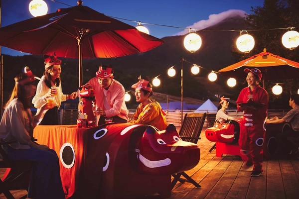 磐梯(ばんだい)山麓に位置するリゾートホテル「星野リゾート 磐梯山温泉ホテル」では、2022年7月9日~8月31日の期間、会津の郷土玩具「赤べこ」をテーマにした「赤べこビアガーデン」を開催します。日本百名山の磐梯山麓に広がる雄大な自然の中、会場の装飾からスタッフの衣装、おつまみの器に至るまで赤べこ囲まれた、フォトジェニックならぬ「べこジェニック」なビアガーデンです。今年は、新たに卓上型の「赤べこビアサーバー」が新登場。赤べこの頭をゆらすとビールが注がれ、楽しくビールを味わえます。