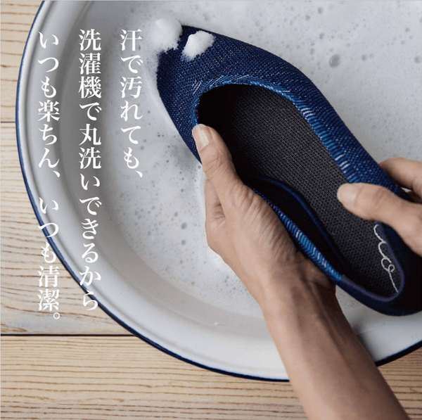 Washi Flat(わしふらっと)は「夏に素足で履いてほしい」と思う靴だからこそ、インソールも本体も洗えるようにしました。しかも、すぐ乾く素材だから、なかなか乾かないストレスや生乾きのお悩みからも解放!