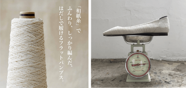 速乾・吸湿性に優れた「和紙糸」を内側に使用したニットパンプスは、「素足で履くことを」前提に設計された一足。履けば履くほど自分の足に馴染み、さらさらとぅるんの心地よい感触に変化。抜群の軽さと自宅で簡単に洗える手軽さで、旅行用としてもおすすめです。