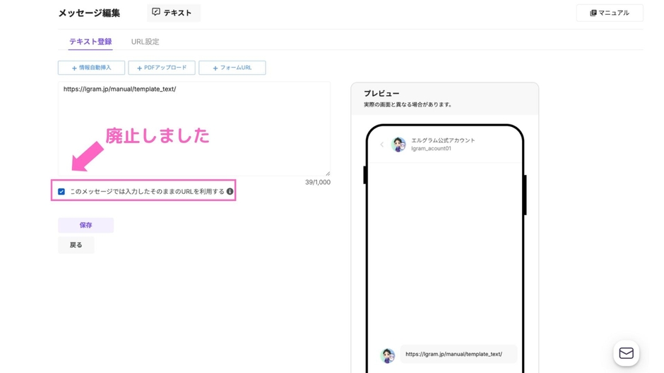 URL分析機能の導入により、従来の「そのままのURLを利用する」機能を廃止いたしました。