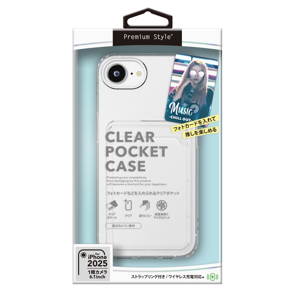 iPhone本体のデザインを活かすクリアタイプ。背面のクリアポケットにお気に入りの写真やステッカーを入れて自由にカスタマイズしたり、普段使用するカードを収納する事も可能です。また、しなやかで柔軟性に優れ、端末本体をキズや衝撃から護ります。お手持ちのストラップを付けて落下を防止できるストラップホール付き。