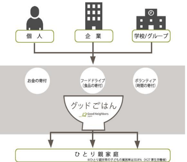 グッドネーバーズ・ジャパン様が実施するひとり親世帯のフードバンク「グッドごはん」は、