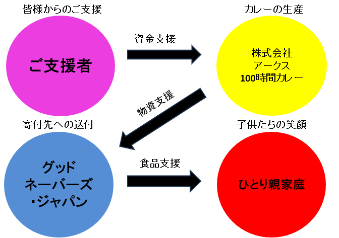 そこでこのたび私たち株式会社アークスでは、「子供にお腹いっぱいの幸せを届けたい!カレー1万食寄付プロジェクト!!」と題して、ひとり親家庭へ私たちが生産したレトルトカレーを届けるためにクラウドファンディングを実施します。