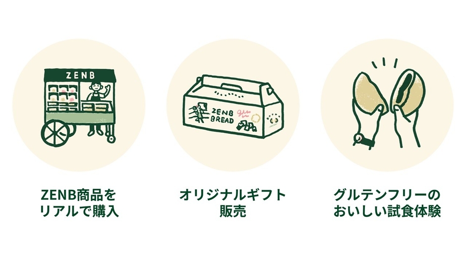 本イベントでは、ZENBの人気商品から4月9日(水)発売予定の新商品、さらにオリジナルギフトボックスを一挙に販売。試食体験や来店特典など、おいしいグルテンフリーをもっと身近に感じられる多彩なコンテンツを展開します。