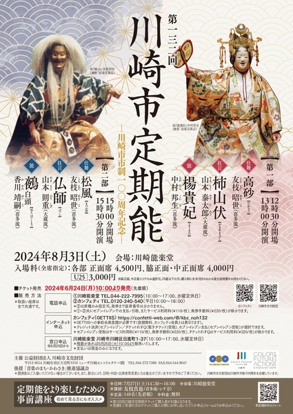 公益財団法人 川崎市文化財団主催、『第132回川崎市定期能』が2024年8月3日 (土)に川崎能楽堂(神奈川県川崎市川崎区日進町 1-37)にて開催されます。