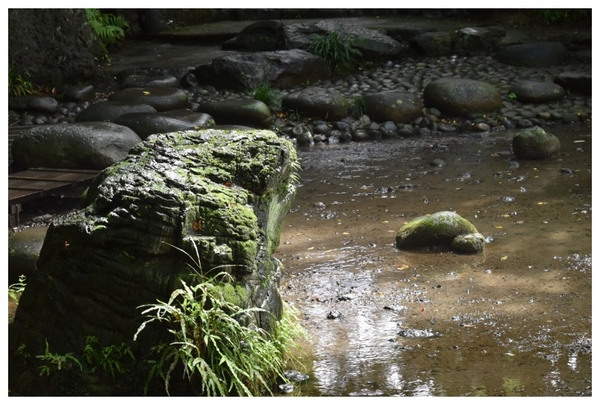 家光が川の石に腰掛けて造成の指揮を執ったといわれる。