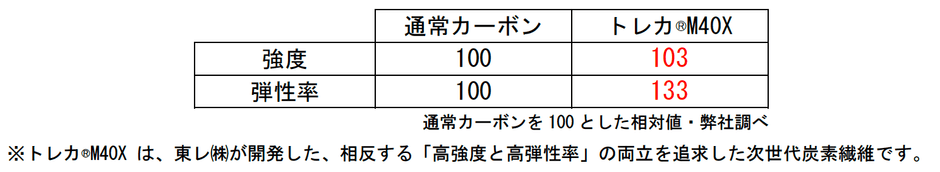 ■強度と高弾性を併せ持つ新カーボン素材「トレカ®M40X※」を搭載