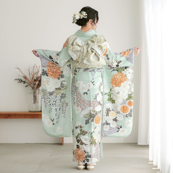 お母さんの思い出の振袖を今風アレンジで、自分らしく着こなせます。
