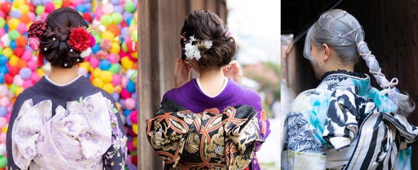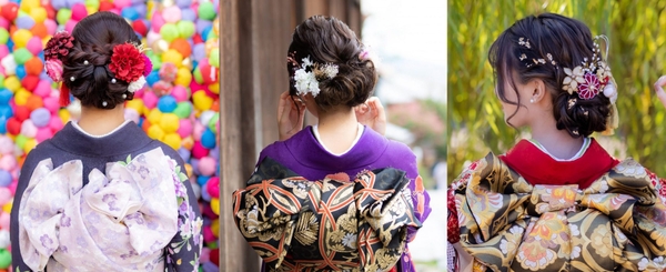 水引を使ったヘアアレンジをはじめ、上品な雰囲気の夜会巻、シニヨンヘアなど、お客様の好みにピッタリ合う様々なヘアスタイルを実現できます。