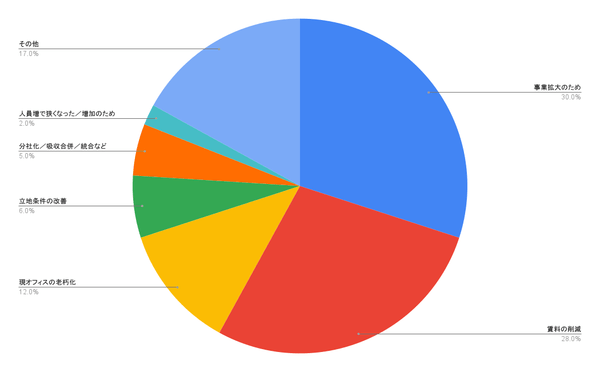 調査の結果、企業がオフィス移転を行う主な理由は以下の通りでした。