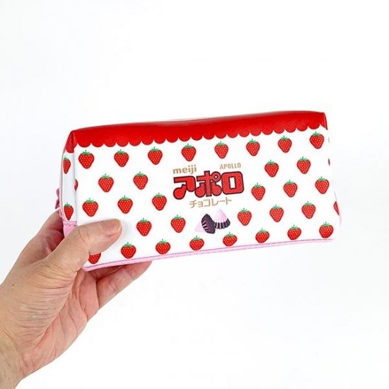 今も昔もいちご柄が女子と食いしん坊の心をくすぐり続けるアポロ☆ペンケースになってもやっぱりかわいかった!