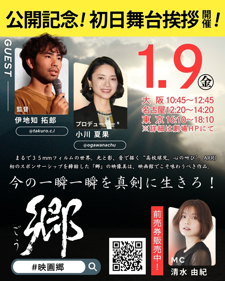 鹿児島出身で現在も鹿児島を拠点に活動する新進気鋭・伊地知拓郎監督(北京電影学院・監督学科2022年卒)のデビュー作、映画『郷』が2026年1月9日(金)より全国公開。新宿ピカデリーをはじめ、キネマ旬報シアター、名古屋、京都、大阪ほか順次上映し、初日には舞台挨拶を実施します。