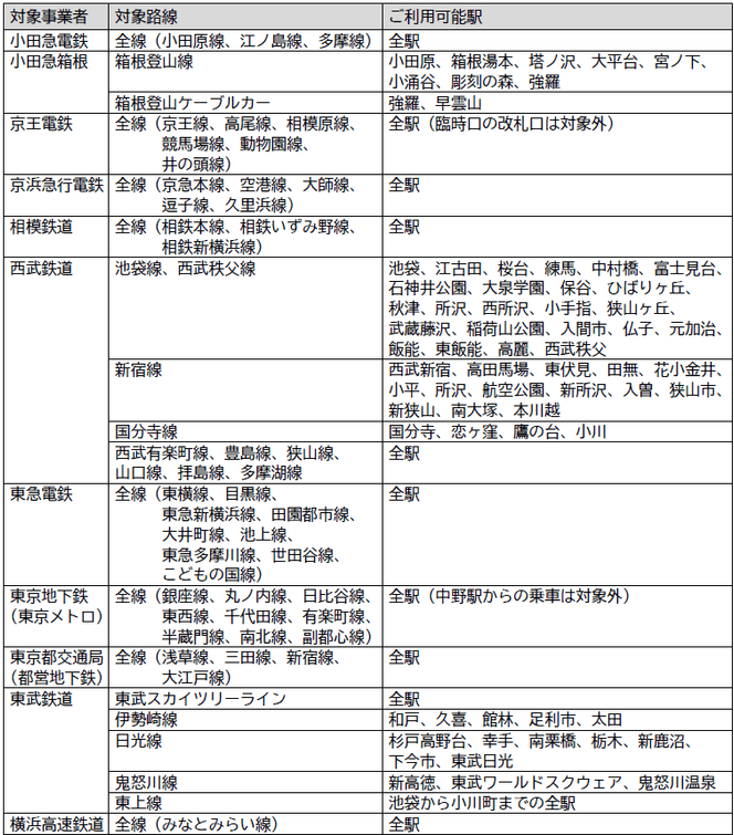 (2)鉄道事業者11社局の対象路線・ご利用可能駅(2026年3月25日時点)