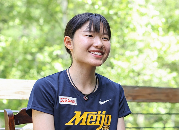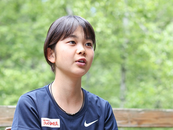 瀬木彩花選手は「ひたすらついていっているような感じです。けがをしないように頑張りすぎないでコツコツやっています」と話す。「練習での距離を増やしたり、他の1年生が走る本数を追加していたら自分ももう1本走ったりするようになってきました」と身体が馴染んできている。6月4日のU20日本選手権3000mで2位(9分22秒76)。「全国大会で初めてメダルが獲得できたので素直にうれしかった」と笑顔を見せた。