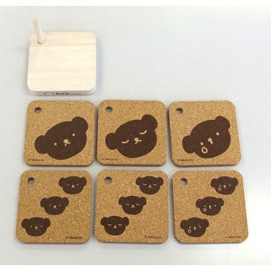 こちらはボリスのコルクコースターセットです。収納に便利な土台も付いており、6枚全部絵柄が違うのがポイント!お友達へのプレゼントにもピッタリで、値段もお手頃です。