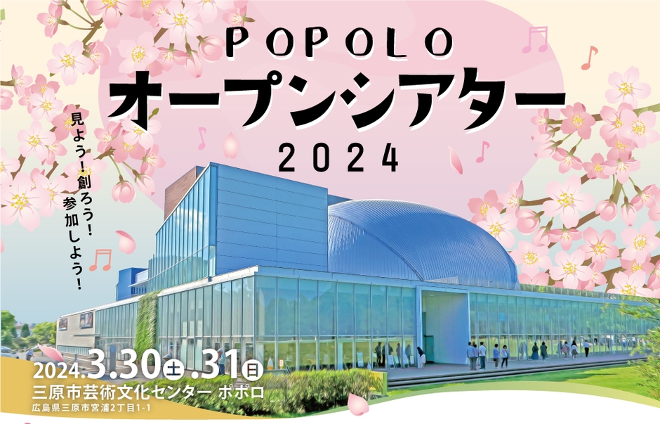 三原市芸術文化センターポポロ(広島県三原市宮浦)では、2024年3月30日(土)、31日(日)の2日間【ポポロ・オープンシアター2024】を開催します。