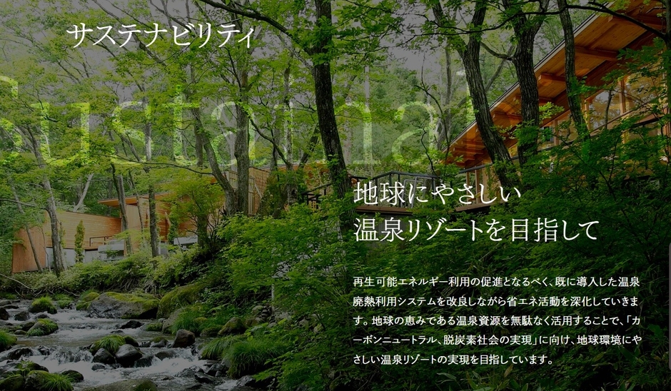 一の坊グループでは、自然と調和するサステナブルな温泉リゾートを目指して、温泉熱の活用などに取り組んでいます。