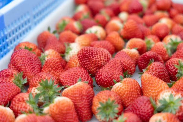 流通するいちごの多くは、少し青白い部分が残る状態で収穫され、店頭などに並ぶ頃に赤くなるそう。一方、収穫時に赤く熟成しているいちごは柔らかく流通の過程で傷んでしまうリスクも併せ持つことから、収穫後できるだけ早くお客様の元へいちごが届き、甘く美味しい状態で召し上がっていただけるよう、扱っているお店を把握する工夫をされていました。