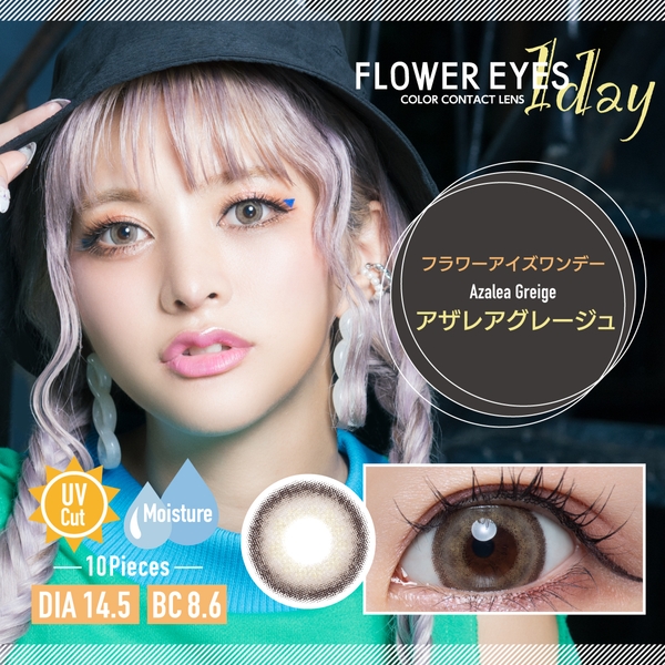 フラワーアイズはレンズサイズを DIA14.5mm( 着色直径 14.0mm )と大きめに設定し、「デカ目」「盛れる」を目指した10 代をメインターゲットとして誕生しました。
