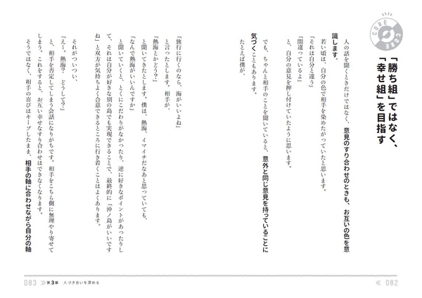 ●本書では、コミュニケーション本でヒットを連発してきた著者が、これまで伝えてこなかった、人づき合いの「深い部分(コア)」を余すことなく披露する。