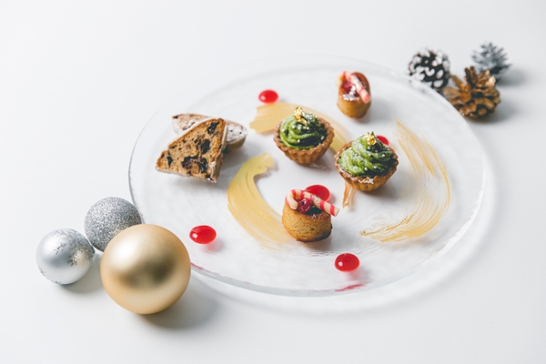 ペストリーシェフのジェニー・チュウが奏でる、クリスマスシーズンにふさわしいシュトーレンや、宇治抹茶のクリスマスツリーのタルトをはじめ彩もクリスマスカラーをテーマにした様々なスイーツが登場します。