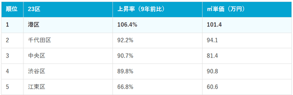 港区は9年間で+106.4%上昇