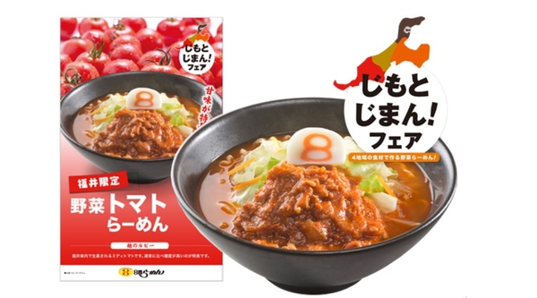 「野菜トマトらーめん」は、秋の定番メニューですが、今年は3月16日の北陸新幹線 福井・敦賀開業にあわせて、JA福井県の協力を得て、初めて春にも販売することができました。味の決め手は、福井県産ブランドミディトマト「越のルビー」。越のルビーの甘みとうまみが、ぎゅっと詰まったトマトスープが野菜と太麺によく絡みます。また、味を引き締めるための程よい辛味と、トマトの酸味がトマトらーめんのスープのおいしさを引き立てています。