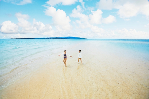 水着姿でお部屋からホテル隣接のビーチへ行き、船に乗り込み、八重山の絶景スポット「幻の島」で海と空を独り占めしたかのような360度のパノラマビューを楽しめます。ガイドからレクチャーを受けたら、絶景スポット「お魚畑」へ向かいます。「石西礁湖(せきせいしょうこ)」と呼ばれる北半球最大の珊瑚礁エリアで、多彩な熱帯魚の群れに出会うことができます。