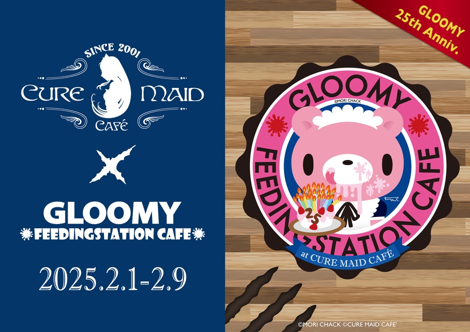 誕生日を記念して、秋葉原にある2001年創業『日本で最初』のメイドカフェ「キュアメイドカフェ」とのコラボが決定!「キュアメイドカフェ」が「GLOOMY FEEDINGSTATION CAFE at CURE MAID CAFÉ」としてOPENします。