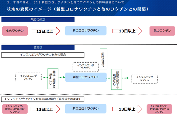 ただし、インフルエンザワクチン以外のワクチンは、新型コロナワクチンと同時に接種できません。