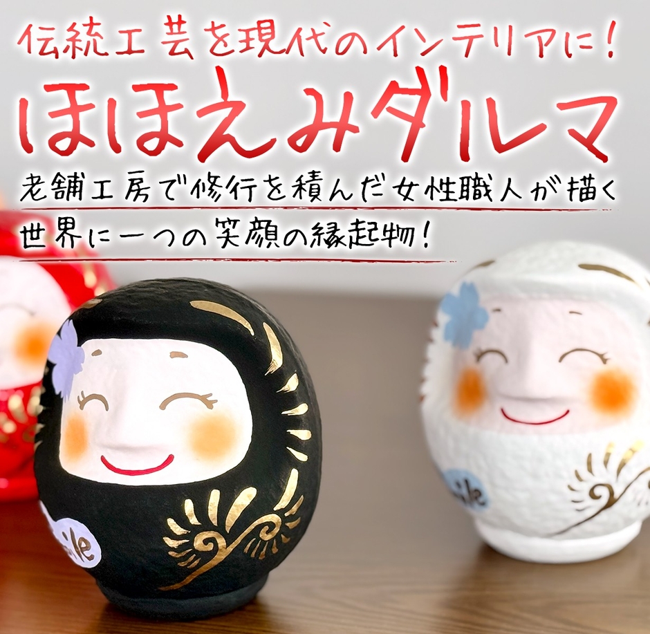 日本一のダルマ生産量を誇る群馬県高崎市。高崎ダルマの老舗工房で修行を積み、業界でも珍しい女性職人が1つ1つ手作業で描く笑顔が素敵な「ほほえみダルマ」が、2025年10月30日よりMakuakeでプロジェクトを開始しました。「特別割引」と「名入れサービス」で通常よりお得に世界で一つだけのダルマに。大切な方への記念品や贈答品として、「贈る人」「贈られる人」すべての心に温かさが届くように。 そんな人々の想いを紡いでいくダルマはどんなに時が経っても、受け取った人の記憶にやさしく寄り添い、ふとしたときに笑顔を思い出させてくれるのではないでしょうか。