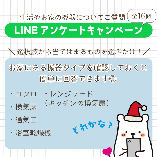 大掃除のお買い物やクリスマスプレゼント準備に!LINEから暮らしに関するアンケートに回答で当たるキャンペーン!