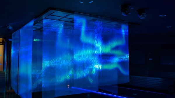 「海」か「宇宙」か?「マクロ」か「ミクロ」か?様々な色彩の光の波に満たされた不思議な空間