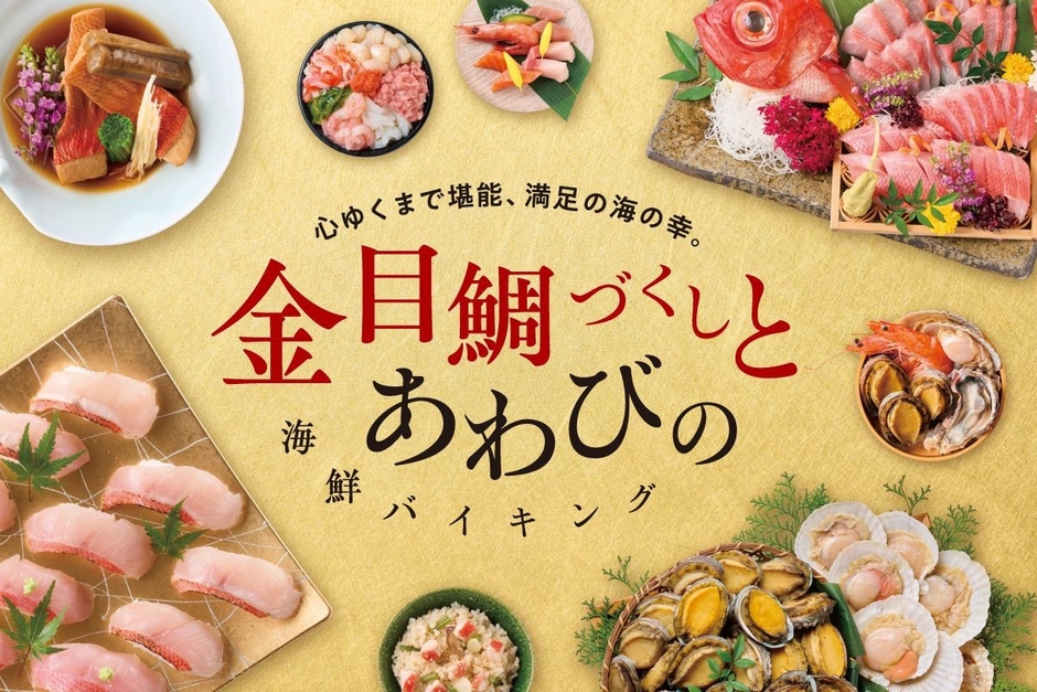 内容:金目鯛づくしの贅沢な料理に加え、あわびの海鮮浜蒸しもすべて食べ放題の豪華バイキング