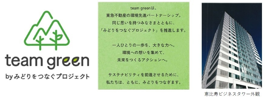 ※1 環境先進パートナーシップ「team green」は、東急不動産と環境保全活動に賛同いただいた入居テナントが一体となり、環境課題解決や価値創造を目指す共創型のパートナーシップです。