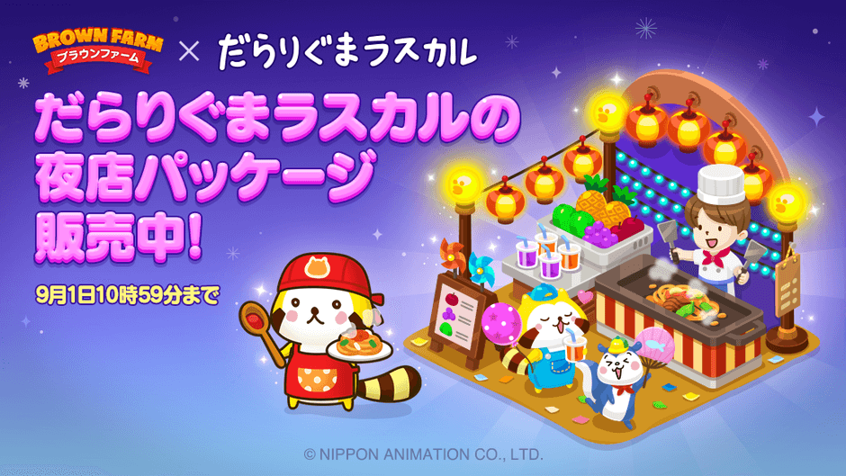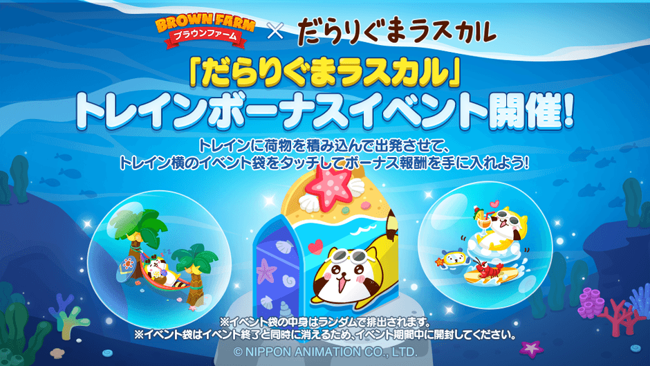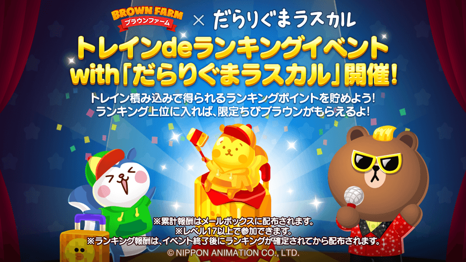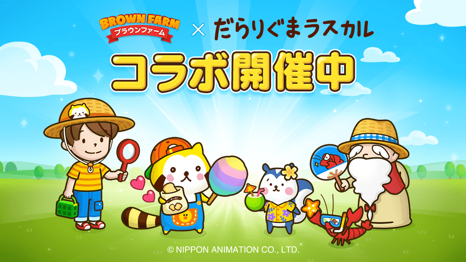 「だらりぐまラスカル」とブラウンだらけの農場ゲーム「LINE ブラウンファーム」のコラボレーションを本日より開始します。