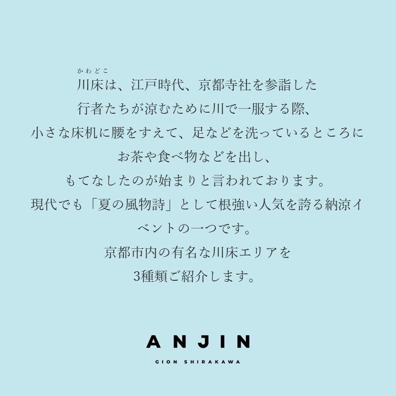 ◆ANJIN GION SHIRAKAWA presents 夏の風物詩・京の川床3選◆