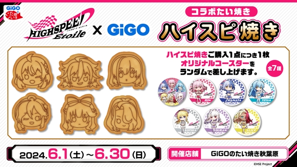 GiGOのたい焼き秋葉原にてオリジナルコースター(全7種)がランダムで1枚付いてくる「ハイスピ焼き」を販売いたします。