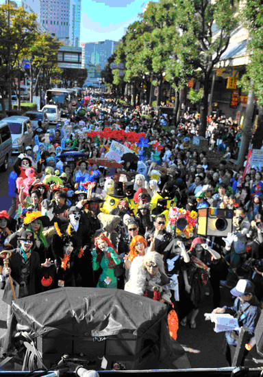 ジャンルも多彩な衣装に身を包んだ人々が参加する、国内最大級のハロウィンパレード!川崎競輪場から川崎駅東口前までを音楽と共に練り歩きます。昨年のパレードは3,000人が参加。参加資格は「仮装していること」なので、26日に一緒に歩いてみたい方は、是非ご予約ください。