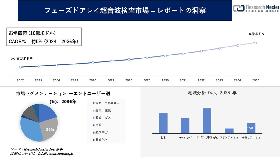 Research Nester Inc.(東京都台東区)は、「フェーズドアレイ超音波検査市場」に関する調査を実施し、2024― 2036 年の間の予測期間を調査しています。