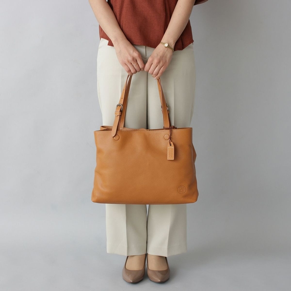 ナチュラルテイストの革が魅力、ON/OFF幅広く活躍できるトート。