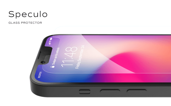 スペクローとはラテン語で鏡を意味します。端末の画面と合わせ鏡のように一体感のある、表面硬度10Hのフルクリアガラスフィルムです。