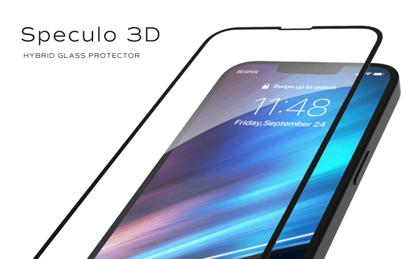 スペクロー 3Dはガラスフィルムの周囲に3D形状のPETフレームを合体させたハイブリッド構造のガラスプロテクターです。