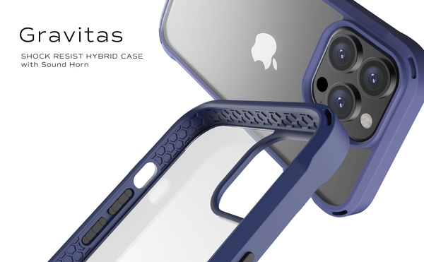 重力を意味する、グラビタス。約3mの高さから落としても耐えられる衝撃吸収性能を持つ、ハイブリッド構造のケースです。
