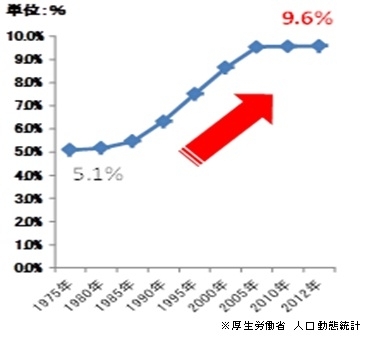 近年、女性の就業率が特に20代後半から30代で上昇し、共働き世帯が増加傾向にあります。それに伴い、初産の平均年齢が30歳を超え、女性が活躍する社会が拡大しております。そのような中、2,500g以下で生まれる低出生体重児の赤ちゃんの割合が増加しており、2012年には出生人口の9.6%にあたる99,311人が低出生体重児として生まれています。中でも、超低出生体重児の赤ちゃん(~1,000g)においては、肌や様々な器官が未発達な状態で、特に慎重なケアが必要となります。