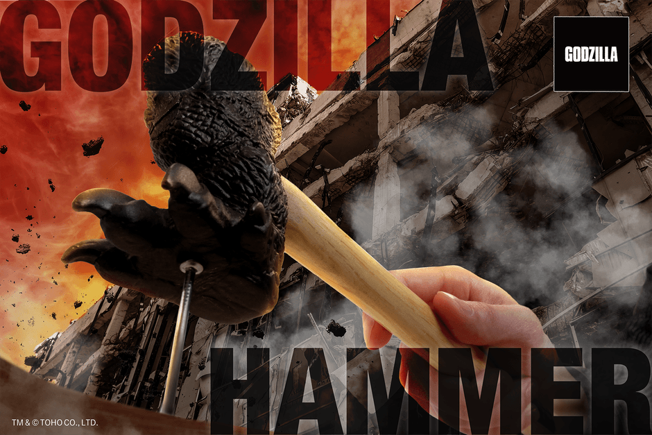 ゴジラの足で釘を踏み付けて打つ!ゴジラハンマーが新発売