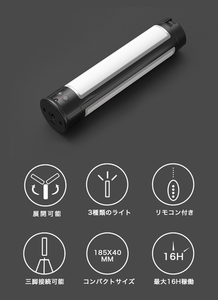 三脚との接続も可能なため、デスクライトや野外照明などにも早変わり。