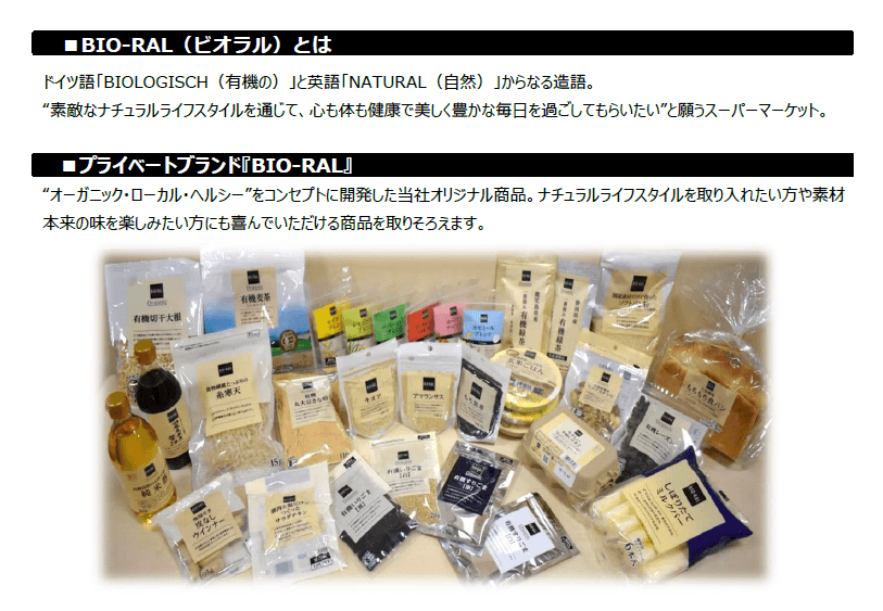 “素敵なナチュラルライフスタイルを通じて、心も体も健康で美しく豊かな毎日を過ごしてもらいたい”と願うスーパーマーケットとして、2016年に「ビオラル靭店(大阪市西区)」が誕生。2020年12月には首都圏の第1号店として「ビオラル丸井吉祥寺店(東京都武蔵野市)」がオープンし、多くのお客様にご愛顧いただいており、ライフ各店舗でのBIO(ビオ)-RAL(ラル)商品の販売も拡大しております。