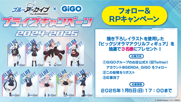 ブルーアーカイブ The Animation × GiGO プライズキャンペーン 2024-2025 実施概要